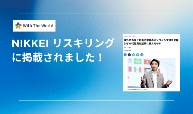 創業後、オンラインを活用し、日本と海外の学校をつなぐ教育サービスを開始したWith The World。異なる文化や価値観を持つ同世代の生徒が、社会課題について議論し合う機会を提供しています。