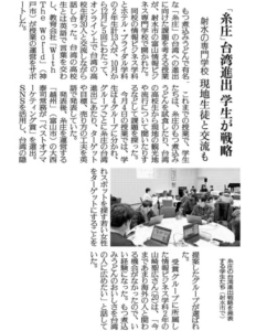 最終発表会の様子が​、富山テレビ・富山新聞・読売新聞・北日本新聞・北陸中日新聞などに紹介いただきました​。富山テレビの放送では国際交流前に富山情報ビジネス専門学校の学生が実際に糸庄で試食を行う様子も放映。新聞記事では、「今まであまり海外の人と関わる機会がなかったのでいい経験になったもつ煮込みうどんを台湾の人に広めたい」というコメントも紹介されました。